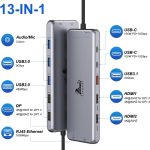 13 in 1 USB C Docking Station – Dual Monitor, Triple Display, 8 USB C/A Ports, Ethernet, Audio – For MacBook, Dell, HP, Lenovo, Surface