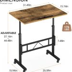 Klvied Small Standing Desk Adjustable Height, Mobile Desk for Sitting and Standing, Rolling Stand Up Desk with Wheels, Portable Laptop Table, Standing Computer Desk for Walking Pad (Brown)